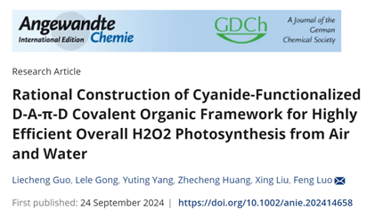 近日,华体会体育官方网站化学与材料学院罗峰教授团队在铀的富集分离研究领域取得创新性成果,并以题为《Rational Construction of Cyanide-Functionalized D-A-π-D Covalent Organic Framework for Highly Efficient Overall H2O2 Photosynthesis from Air and Water》在国际顶级期刊《Angewandte Chemie International Edition》发表。学校化学与材料学院2022级化学专业硕士研究生郭烈成为论文的第一作者,罗峰为通讯作者。
