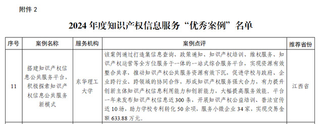 10月9日,国家知识产权局办公室公布了2024年度知识产权信息服务“十佳案例”及“优秀案例”,华体会体育官方网站报送的《搭建知识产权信息公共服务平台,积极探索知识产权信息公共服务新模式》服务案例入选“优秀案例”,是江西省唯一入选案例。