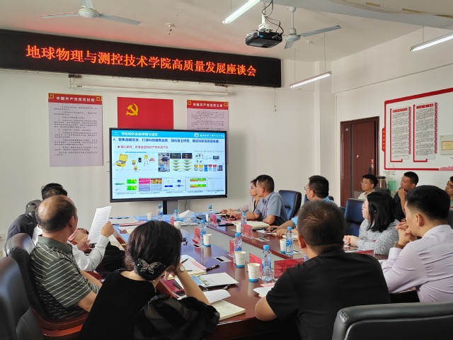 地球物理与测控技术学院相关负责同志就党建、思想政治教育、学生管理、高质量发展规划等方面开展情况和存在的困难进行了汇报,并提出了今后的工作设想。与会人员围绕“用‘教育家精神’推动江西教育高质量发展”主题,进行了深入探讨与交流。