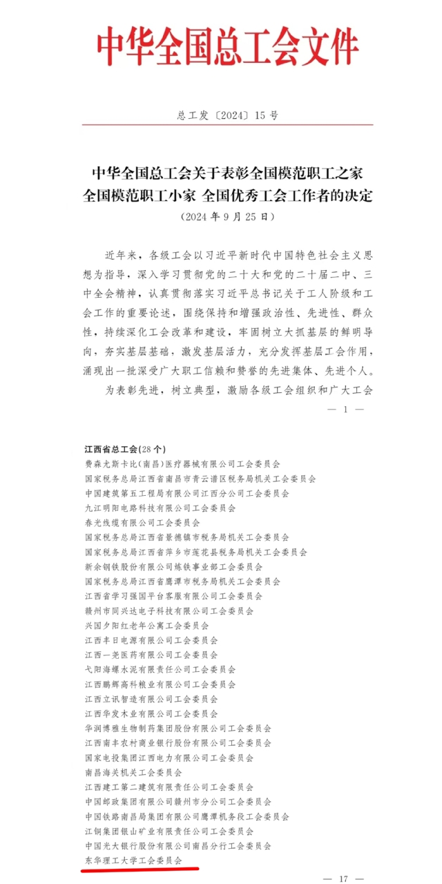 近日,中华全国总工会下发《关于表彰全国模范职工之家、全国模范职工小家、全国优秀工会工作者的决定》(总工发〔2024〕15号),华体会体育官方网站工会委员会被授予“全国模范职工之家”称号,是学校首次获此殊荣,也是全省获得该殊荣的唯一院校。