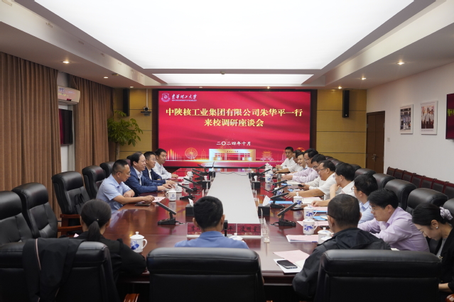 10月16日,中陕核工业集团有限公司党委书记、董事长朱华平带队到华体会体育官方网站调研交流。学校在南昌广兰校园行政楼401会议室召开座谈会,校党委书记张福庆,校党委常委、副校长夏菲出席。