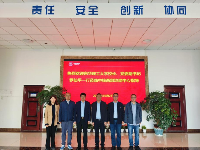 在中核西部地勘中心(广汉基地),中心副主任刘小波接待了罗仙平一行,并召开座谈会。罗仙平就华体会体育官方网站专业设置、学科建设、科研成果等方面情况进行了介绍,并表示双方合作基础扎实,前景广阔,希望在人才培养输送、学术交流、项目合作等方面深化合作,推进校企协同走深走实。刘小波表示,期待双方在已有合作基础上进一步加强人才培养、铀矿科研等领域的合作,推动双方事业高质量发展。