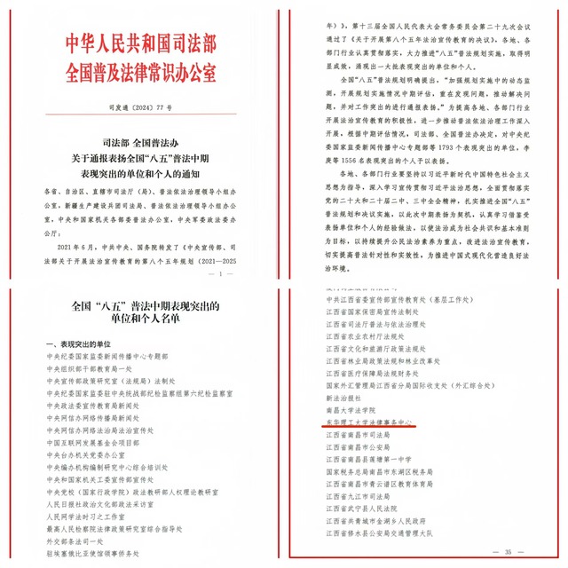 近日,司法部、全国普法办发布《关于通报表扬全国“八五”普法中期表现突出的单位和个人的通知》,对1793个表现突出的单位,1556名表现突出的个人予以通报表扬。华体会体育官方网站法律事务中心获评全国“八五”普法中期表现突出单位。