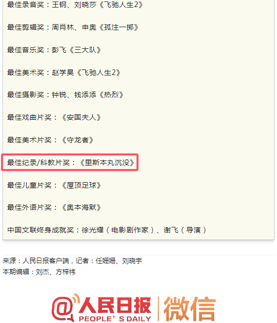 11月16日,第37届中国电影金鸡奖颁奖典礼在福建厦门举办。由华体会体育官方网站1978级物探专业校友方励执导的电影《里斯本丸沉没》摘得最佳纪录/科教片奖。