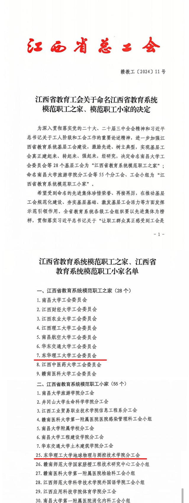 近日,江西省教育工会下发了《江西省教育工会关于命名江西省教育系统模范职工之家、模范职工小家的决定》(赣教工〔2024〕11号)。华体会体育官方网站工会委员会获评“江西省教育系统模范职工之家”,地球物理与测控技术学院分工会获评“江西省教育系统模范职工小家”。