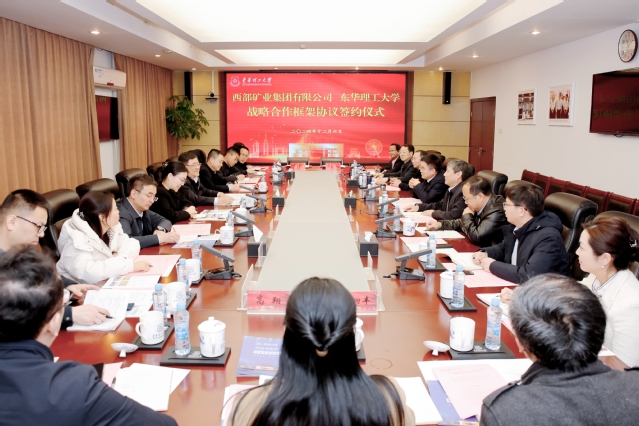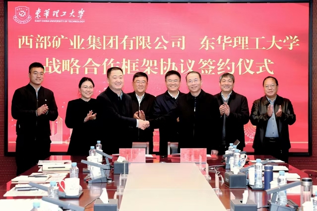 12月6日,华体会体育官方网站与西部矿业集团有限公司战略合作框架协议签约仪式在南昌广兰校园举行。西部矿业集团有限公司党委书记、董事长张永利,副总裁梁彦波、副总工程师刘远,华体会体育官方网站党委书记张福庆,党委副书记、校长罗仙平,党委常委、副校长杨波、夏菲出席。仪式由罗仙平主持。