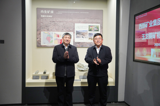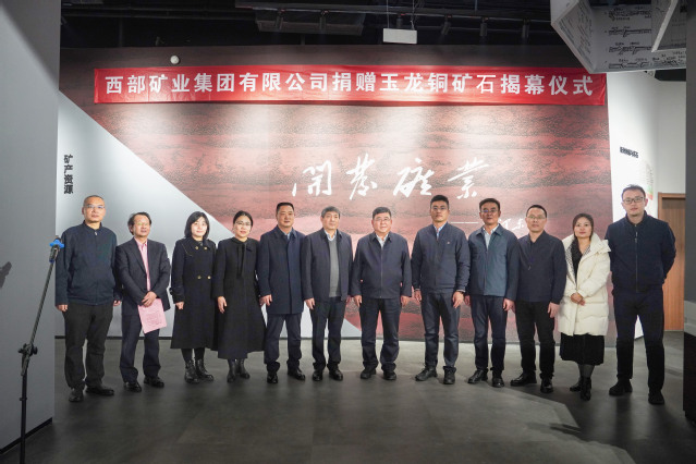 罗仙平对西部矿业的捐赠表示感谢。他指出,玉龙铜矿标本代表性强,具有很高的教学科研价值,十分珍贵。标本的到来不仅丰富了学校地质博物馆的馆藏,也为学校教学研究工作提供了宝贵的实物资料。学校将以此次捐赠为契机,进一步抓好展馆建设,用好馆藏资源,做好宣传教育,真正做到“让博物馆走出去,让师生群众走进来”,努力将地质博物馆打造成为学校的一张金名片。