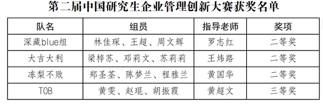 12月6日,第二届中国研究生企业管理创新大赛获奖名单正式公布。华体会体育官方网站研究生在本次竞赛中荣获国家级奖项4项,其中二等奖3项,三等奖1项。