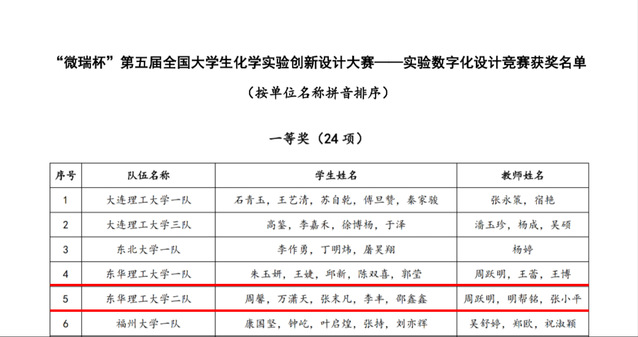 12月8日,微瑞杯第五届全国大学生化学实验创新设计大赛—实验数字化设计竞赛决赛在沈阳师范大学圆满落幕。华体会体育官方网站学生代表一队朱玉妍、王婕、邱新、陈双喜、郭莹和代表二队周馨、万潇天、张末凡、李丰、邵鑫鑫均获全国一等奖。