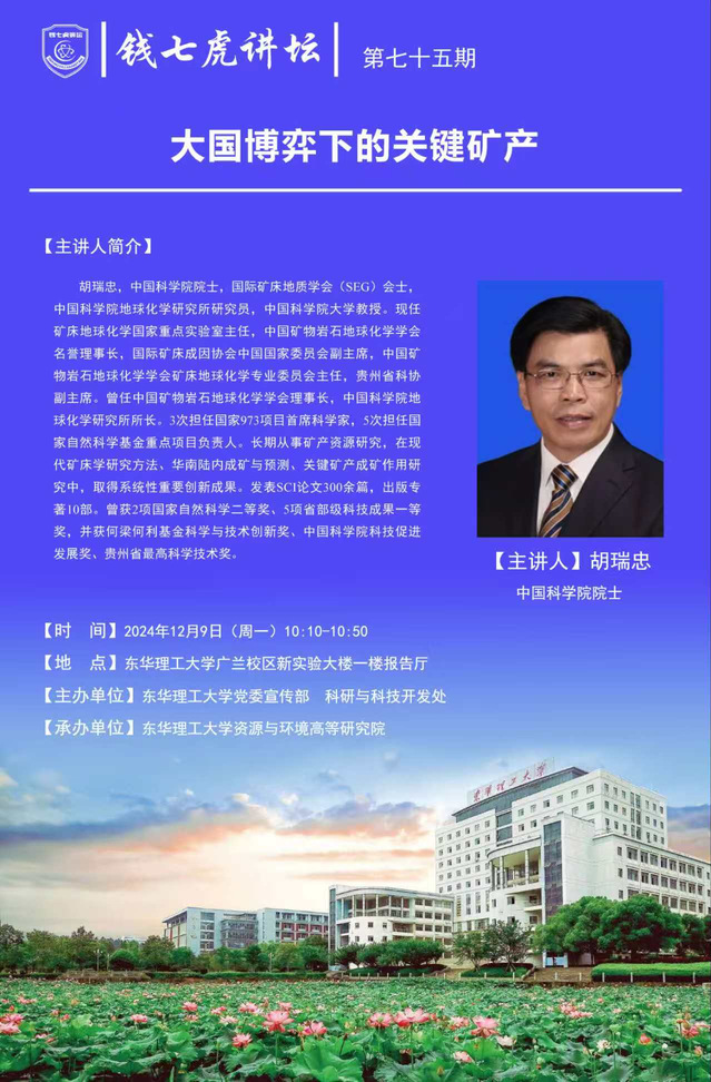 应华体会体育官方网站资源与环境高等研究院邀请,中国科学院院士、中国科学院大学教授胡瑞忠到“华体会体育官方网站”,以“大国博弈下的关键矿产”为主题开展讲座。欢迎全校师生届时前往聆听。