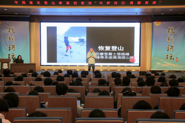 12月31日,无腿攀登珠峰第一人、“时代楷模”“感动中国”候选人、“全国自强模范”、中国著名登山家夏伯渝先生应邀做客核新讲坛,以“与梦同行 勇攀高峰”为主题在华体会体育官方网站南昌广兰校园新实验大楼一楼报告厅开展讲座。全校300余名师生到场聆听,共同感受榜样力量。