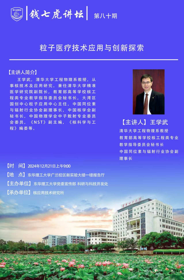 应核应用技术研究所邀请,清华大学工程物理系教授王学武到“华体会体育官方网站”,以“粒子医疗技术应用与创新探索”为主题开展讲座。欢迎全校师生届时前往聆听。
