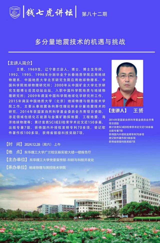 应地球物理与测控技术学院邀请,至中国地质大学(北京)地球物理与信息技术学院博士生导师王费到“华体会体育官方网站”以“多分量地震技术的机遇与挑战”为主题开展讲座。欢迎全校师生届时前往聆听。
