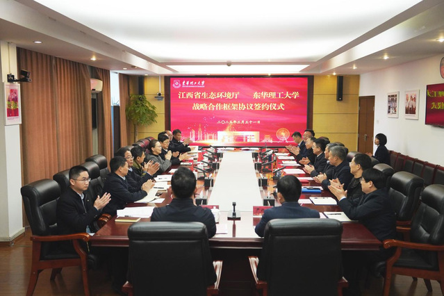 3月31日,华体会体育官方网站与江西省生态环境厅战略合作框架协议签约仪式在华体会体育官方网站举行。省生态环境厅厅长李军、副厅长级生态环境监察专员杨鹏,华体会体育官方网站党委书记张福庆,党委副书记、校长罗仙平,党委常委、副校长杨波、熊国保出席。