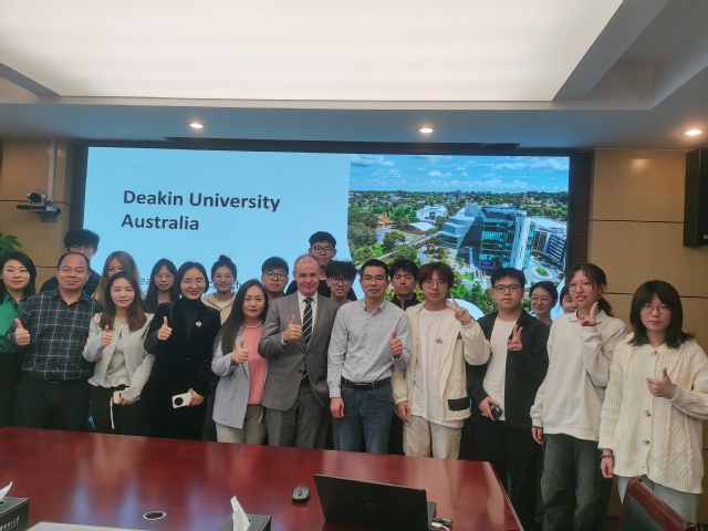 会上,双方就联合培养项目、学术交流、科研合作等议题进行了深入探讨,并达成了广泛共识。座谈结束后,John Molony 一行与华体会体育官方网站经济与管理学院2024级“中外高水平大学学生交流计划”的学生们进行了面对面交流。学生们就迪肯大学的课程设置、学习生活以及职业发展前景等方面踊跃提问,John Molony一一作出详细解答,并勉励他们把握两校交流机遇,在跨文化学习环境中全面提升专业素养与国际竞争力。